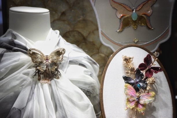 雅寶在博覽會中,構思了一個名為「Fine Jewellery, Reimaged」的系列,以宣傳自家品牌的製造技術與匠心。「這系列的最大特色是將珠寶首飾融入生活中,其中一盞枱燈上的花和蝴蝶配件,均以18K金鑲嵌鑽石和寶石而製成,花可以拆作吊墜或心口針配戴,而蝴蝶亦可作戒指。」William說,希望利用這種嶄新的設計模式,在內地市場搶佔一席位。